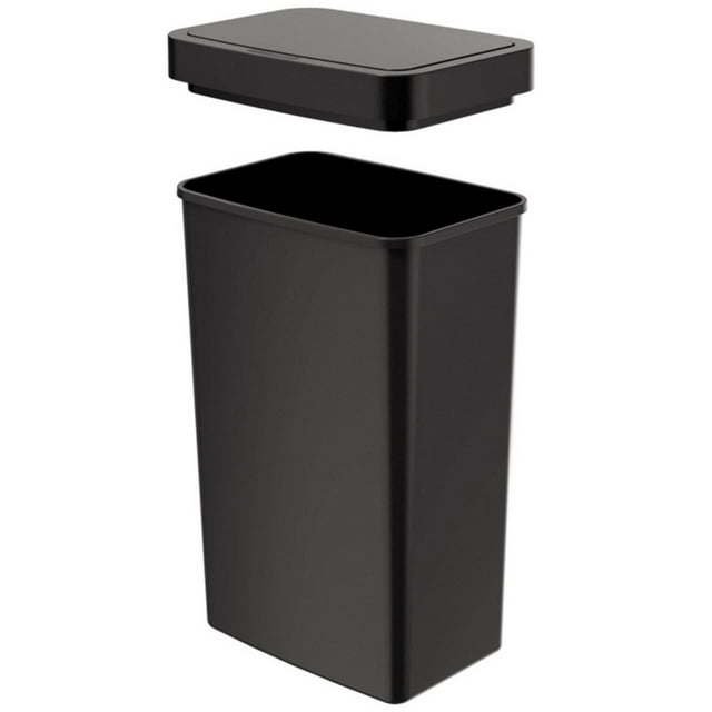 The 13.2 Gallon Plastic Motion Sensor Trash Can is perfect for large families or busy environments. The touchless operation allows for improved cleanliness and hygiene, this trash can operates with hands-free motion sensing technology. Simply wave your hand above the sensor at the front of the lid to open it automatically. The creative lighting system counts down to the soft close of the lid for a quiet user experience. Perfectly sized to accommodate any standard 13-gallon trash can liner, this durable plastic resin garbage can also features soft touch buttons for manual operation. The rectangular design and all black finish makes this the ideal garbage can for use in the kitchen, office, laundry room or any other area of the house.