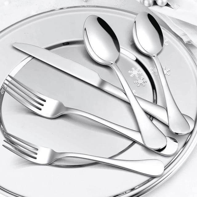 Excellent design of comfortable and long handle to these flatware sets. Exclusive durability. These flatware sets adopt durable stainless steel material and mirror polishing processing technique. The fork, knife and spoon are heat resistant and rust resistant. Dish-washing liquids can be easily removed while washing. Easy to clean.
