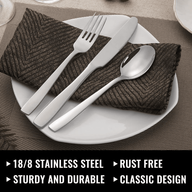 Perfect for use: this set is ideal for family daily use, parties, gatherings, family dinners, candlelight dinner, banquet, thanksgiving, bbq, wedding and other formal occasions. Also apply to apartment, cabin, home, camping, hotel, restaurant, eatery, bistro, etc or when you need extra flatware set .