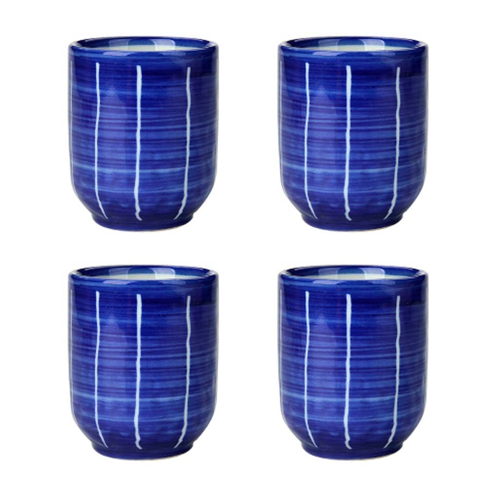 4Pcs Japanese Style Blue Ceramic Teacups Small Straight Wine Cups 150ML