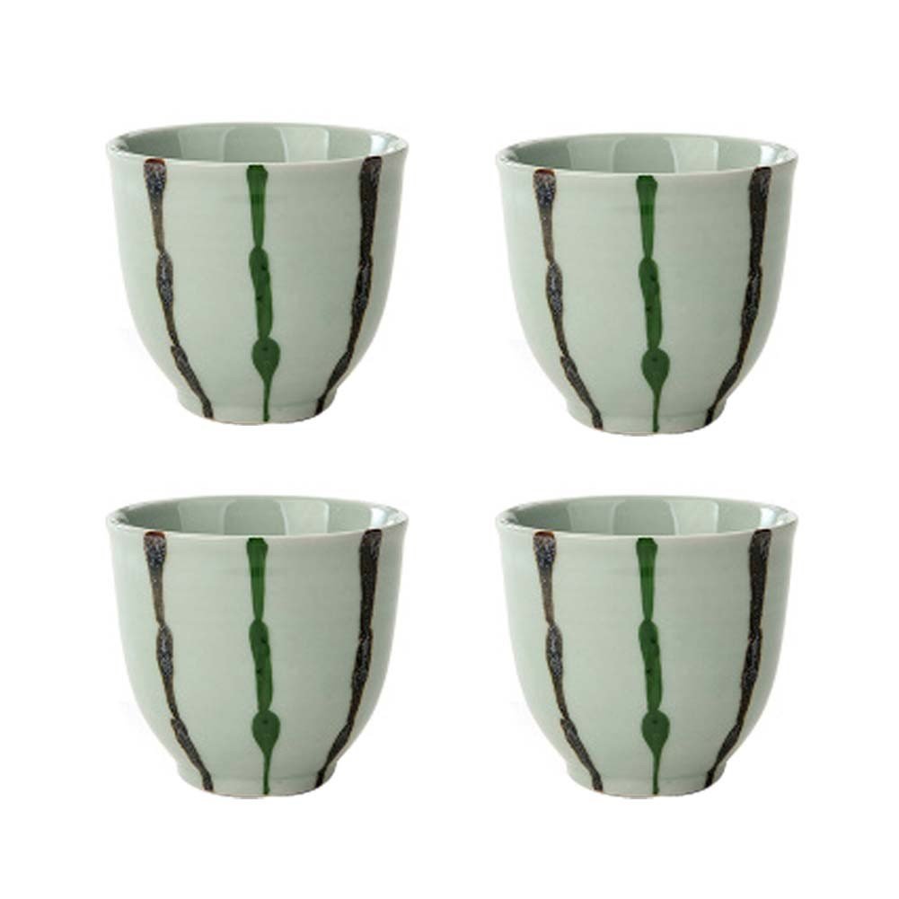 Home > 4Pcs Japanese Style Brown Green Stripe Ceramic Teacups Small Straight Wine Glass 150ML