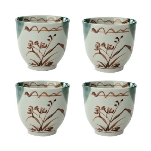 4Pcs Japanese Style Orchid Ceramic Teacups Small Straight Wine Cups 150ML 4Pcs Japanese Style Orchid Ceramic Teacups Small Straight Wine Cups 150ML