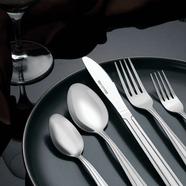 [mirror polished and pattern design]the silverware sets are highly mirror polished and has smooth edge that always keep shiny. The stainless steel flatware stylish has a unique texture design on the front side of each handle to make the cutlery set more elegant. Furthermore, the elegant silverware set complements most tableware, elevating everyday meals into a fine dining experience.