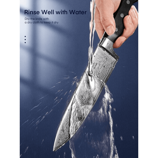 The triple-rivet handles are grippy, ergonomically shaped, making long sessions of food prep virtually effortless and fatigue-free for fingers, hands, wrists and forearms.