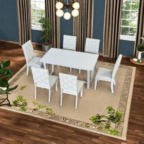 Modern 5-Piece Dining Set with Glass Top Table and 4 White PVC Leather Chairs