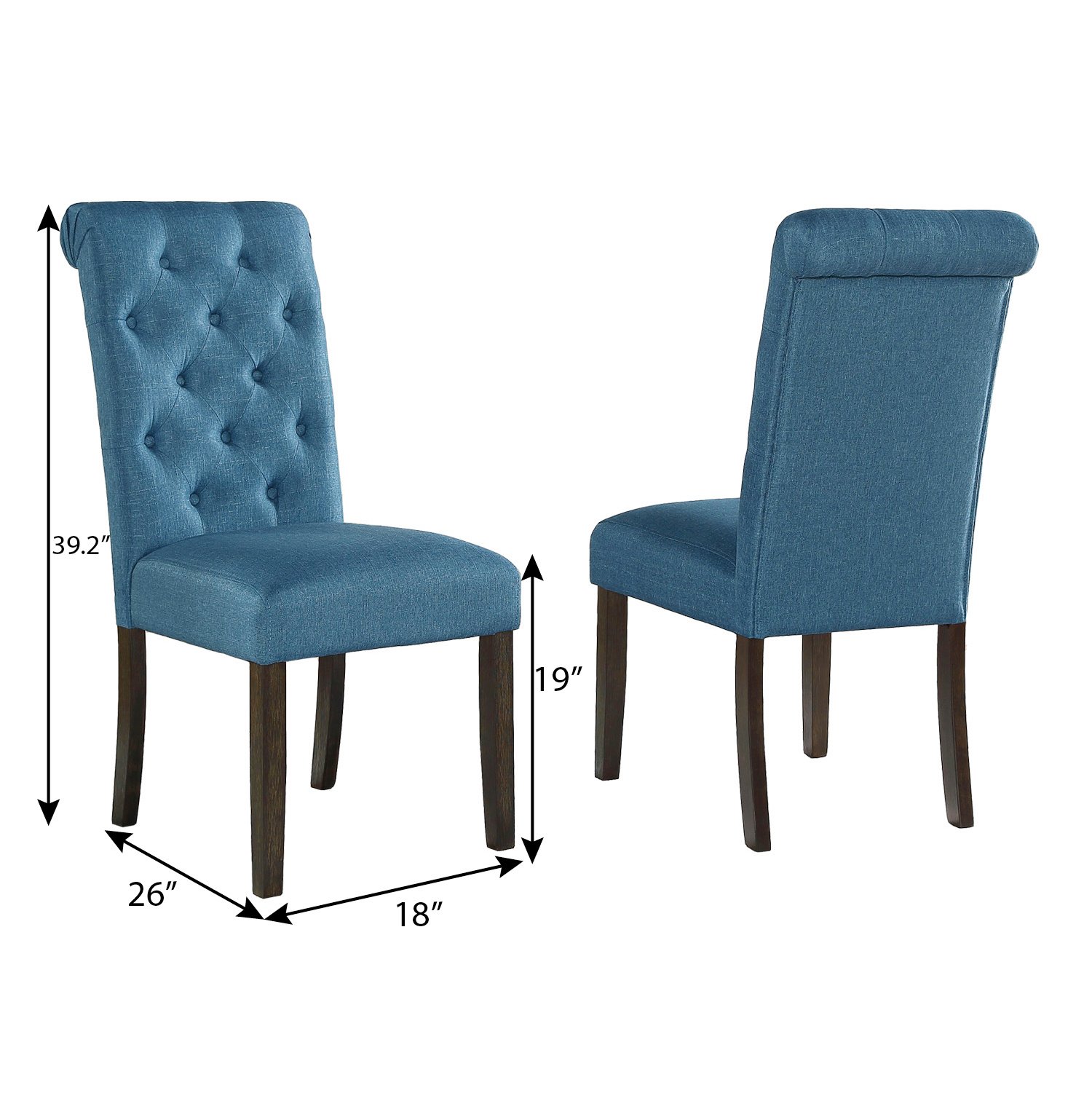 HIGHLIGHTS: The dining table features a metallic hairpin design, which adds both stability and style. It has a rustic dark pine finish and showcases a natural wood grain texture, offering an elegant look. The chairs are designed with button-tufted details, providing a touch of sophistication. Chair legs are finished in a dark espresso color that complements the table perfectly. Indulge in the allure of this exquisite dining set and elevate your home decor.