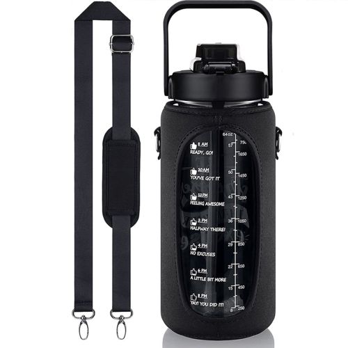 Half-Gallon Water Bottle With Sleeve 2L Leak-Proof, BPA-Free Sports Drinking Bottle With Straw And Custom Time Marker