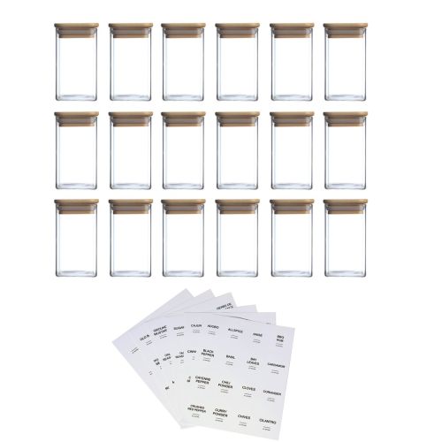 Home > 18 Pcs Square Spice Jars With 72 Stickers, Kitchen Pepper Jars For Salt Seasoning, Snacks, Tea, Coffee