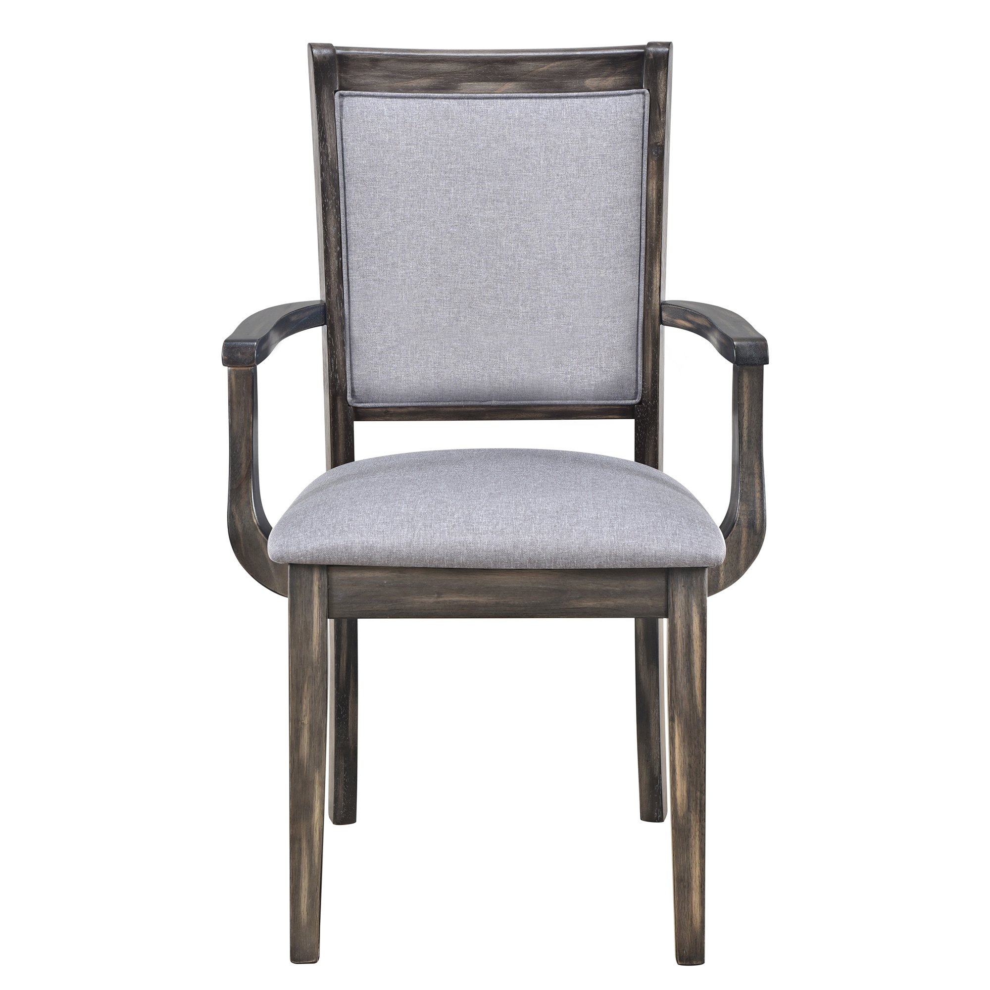 Solid Wood //Weathered Wood Texture // Extendable Tabletop // Removable Leaf // Thick Tabletop // Trestle Base w/ Stretcher // Decorative⋑portive Block // 4 Side Chairs // 2 Arm Chairs // Ergonomic Back // Upholstered Chairs // Set of 6 Chairs