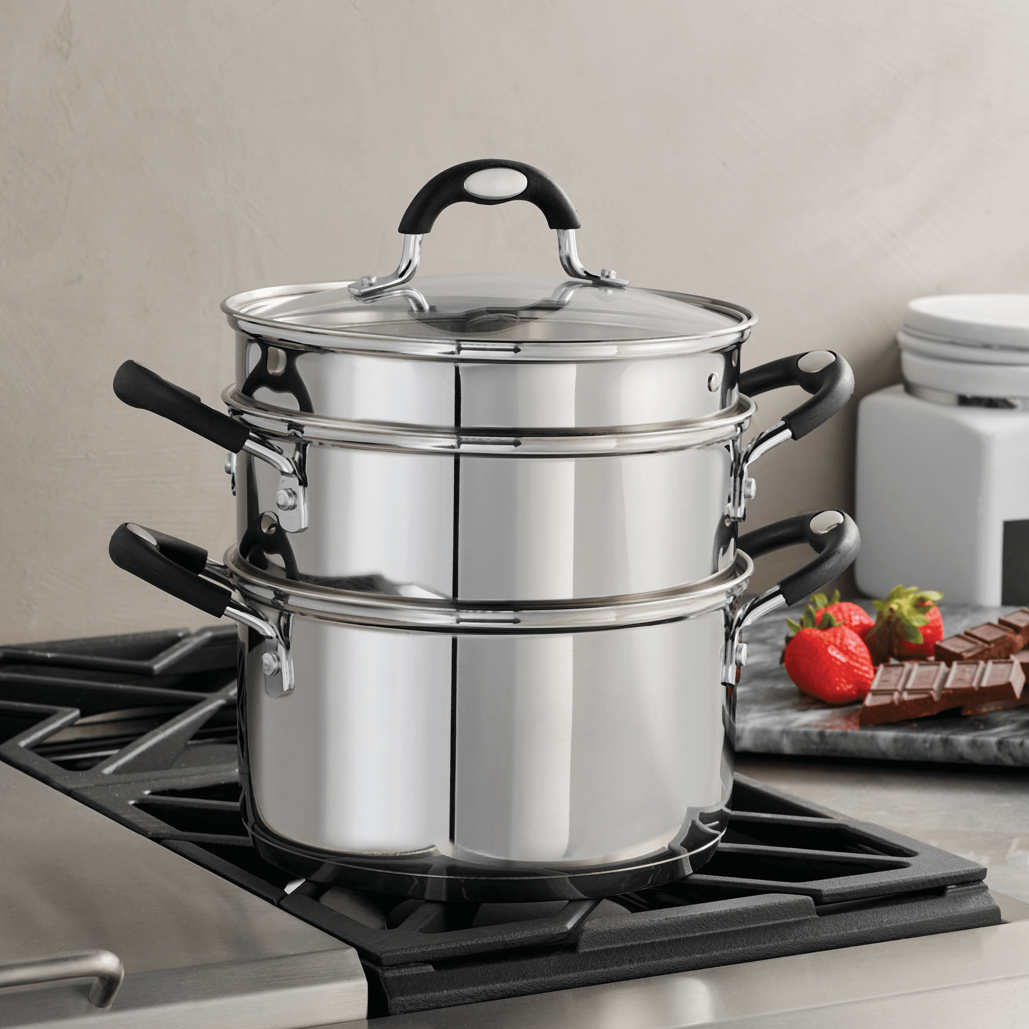With a clear glass lid, you can monitor the cooking progress in this Stainless Steel Double Boiler